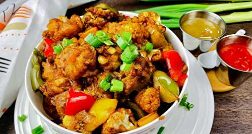 A popular Indo Chinese recipe where deep fried crisp cauliflower florets are tossed in hot , sweet and sour manchurian sauce.