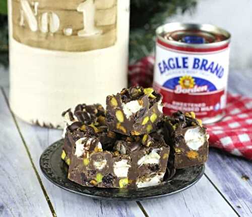 Chocolate Cherry Pistachio Rocky Road Fudge is incredibly smooth, rich and chocolatey, bursting with lots of fluffy marshmallows, roasted and salted pistachios and tart plump dried cherries! It's pure Christmas Heaven! Great for gifting and party fun!