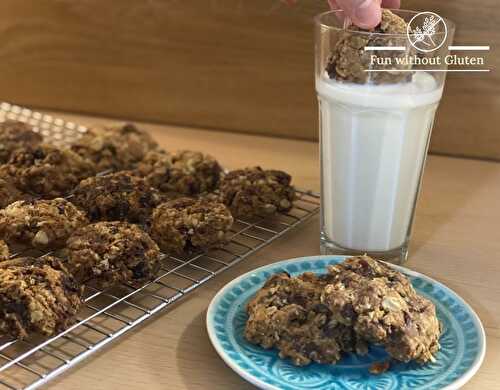 This chewy gluten free oatmeal cookie recipe uses chocolate or raisins (or both).