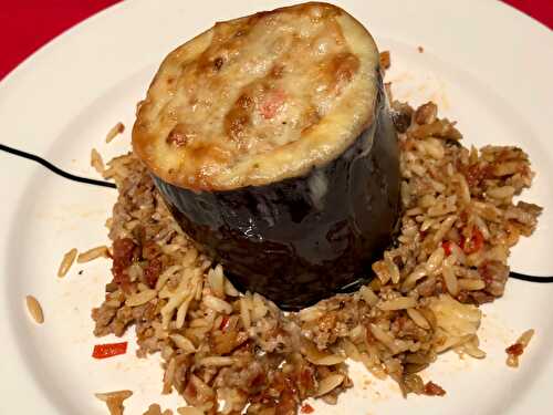 This stuffed eggplant with minced poultry and Greek pasta (orzo) is a great oven dish and a very creative way to use eggplant.