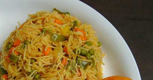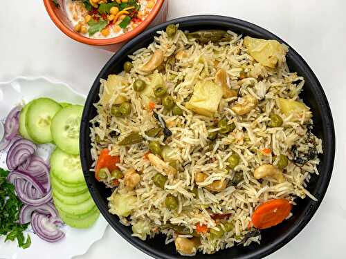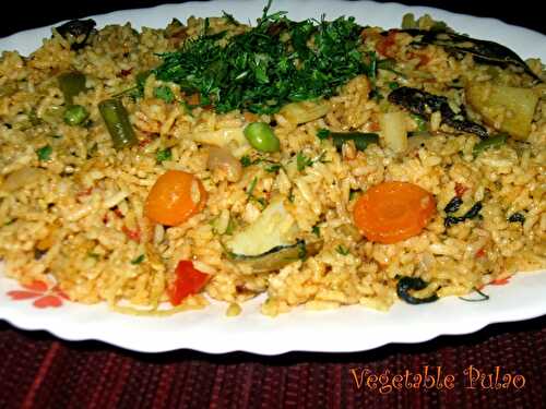 Vegetable pulao is a one-pot rice dish prepared by cooking rice with mixed vegetables and spices.
