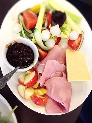 How do you make a traditional English ploughman's lunch platter? This classic, retro English recipe is made using cheese, bread, ham and more.