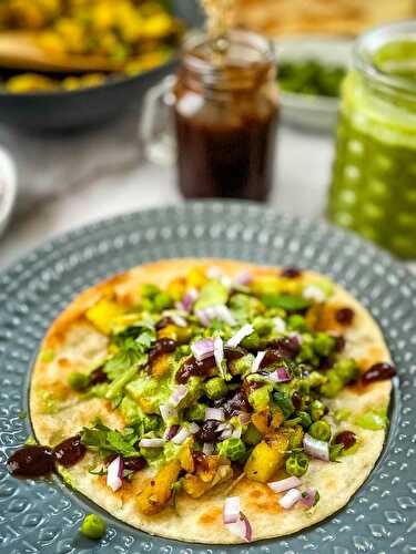 Samosa tostadas are a great way to get your homemade samosa fix without the hassle of actually making them! Just top the classic potato and pea mixture on a fried flour tortilla with some sweet and spicy chutney!