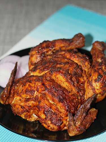 Tandoori Chicken is a kabab dish, where it is marinated first with lemon juice and salt in order to tenderize it for quick cooking and then marinated again with a blend of yogurt and spices to enhance the flavors.