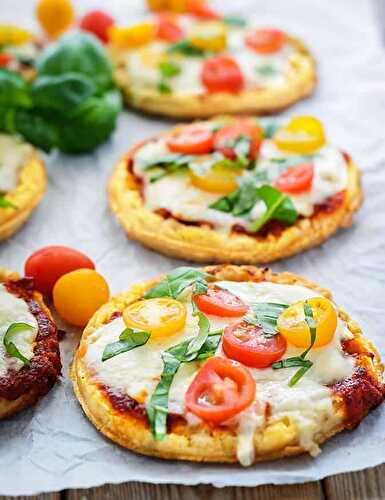 Waffle Pizza (Gluten-Free, Vegan) is a must to make, they are easy to prepare with pizza sauce, vegan mozzarella, tomato and basil.