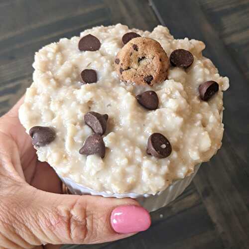 Tastes like cookie dough, but meant for breakfast! This chocolate chip cookie dough oatmeal is a great post workout meal!