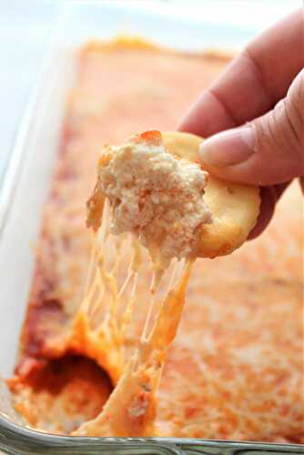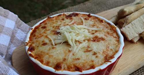 A family favorite, this easy cheesy pizza dip is hot and bubbly and tastes like pizza.