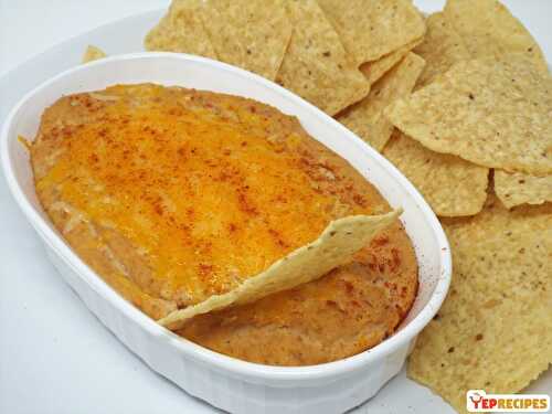 This Cheesy Refried Bean Dip is packed with melted cheese, a tangy punch of salsa, the creaminess of refried beans, and plenty of fresh chopped cilantro and onions!
