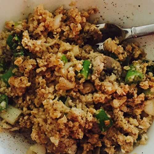 Swap your usual rice for cauliflower and make this egg fried cauli rice recipe which includes soy sauce, green onion and garlic for a typical Chinese flavor