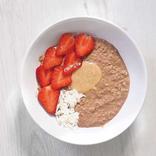 Nourishing Maca, Almond Butter, and Cacao Overnight Oats for a delicious and satisfying breakfast.