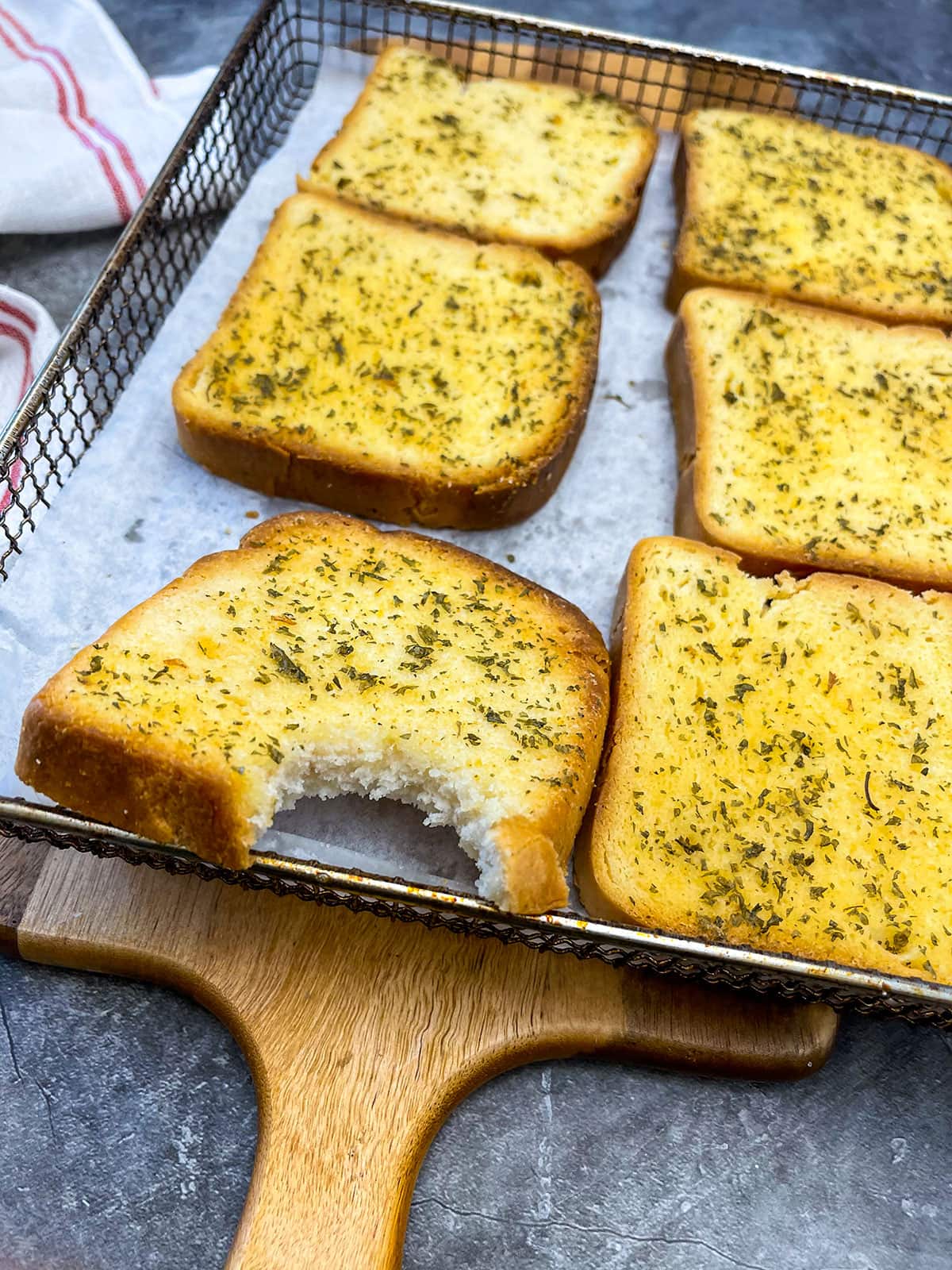 This easy air fryer garlic bread is perfectly crispy, crazy delicious, and done in no time at all! It's as easy as mixing your garlic butter spread and popping the slices into your air fryer - and voila! You have the best garlic bread ever!