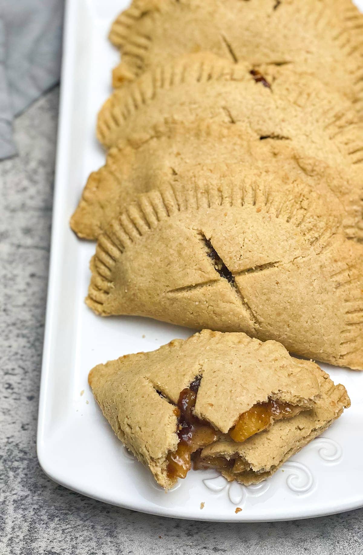 Gluten free fig and hazelnut hand pies; filled with orange and honey kissed sun-dried figs, hidden inside a sweet pastry crust.