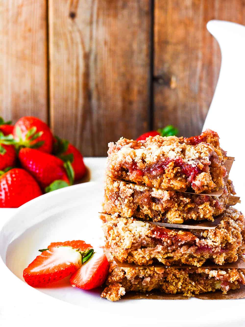 These gluten free Raspberry Crumb Bars feature layers of fruity flavor over a buttery cookie crust topped with a brown sugar crumble.
