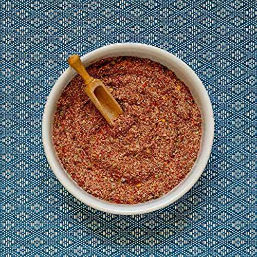 A spice blend from Louisiana consisting of paprika, garlic, onion, cayenne, oregano, thyme, and salt & pepper.