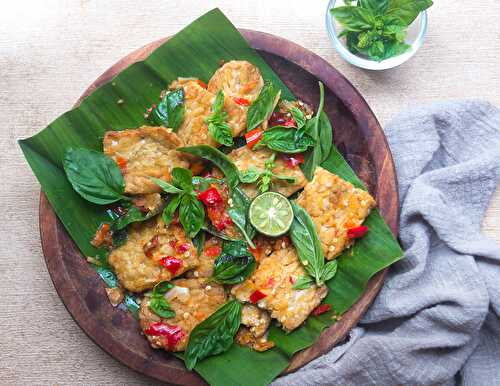 Tempe penyet or smashed tempeh is one of my favorite vegetarian dishes.