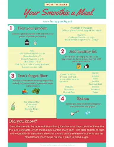 With a few simple tweaks, you can make a smoothie filling enough to last hours! Follow this or try one of the recipes in this post!