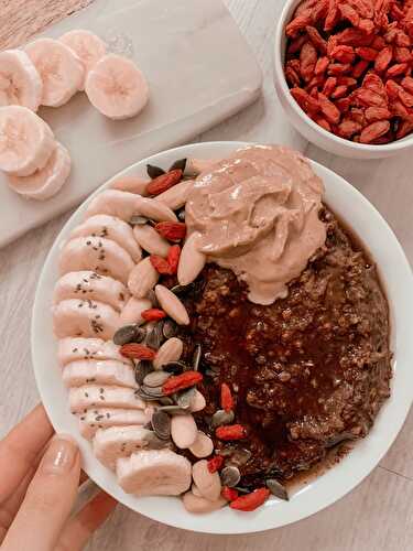 Chocolate Porridge with Raisins and Dates for a healthy breakfast.