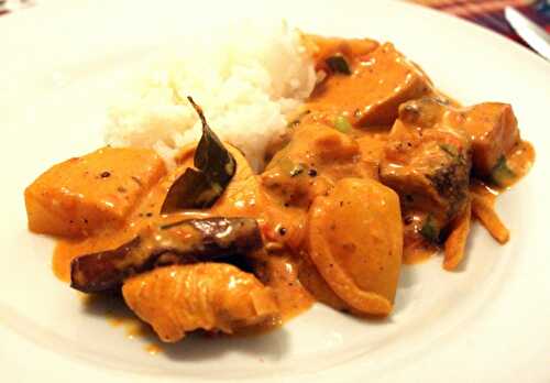 Bei diesem Brinjal Curry, sind die Auberginen nicht im Oel gebraten, sondern im Ofen geröstet.