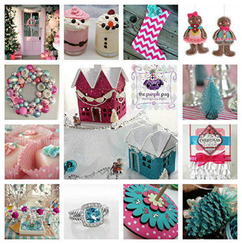 Aqua, Fuchsia and Teal Christmas Party inspiration board for a Christmas Visions of Sugar Plum Party or Holiday Celebration!