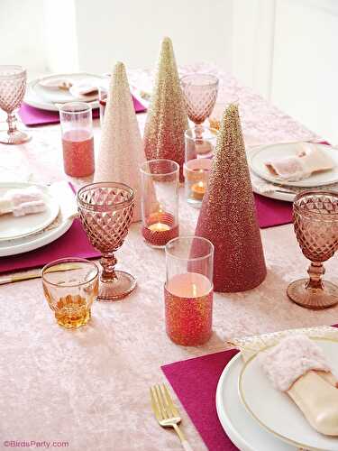 Pink Sugar Plum Christmas Tablescape + FREE Printables - ideas on styling and DIY table decor projects for the holidays!