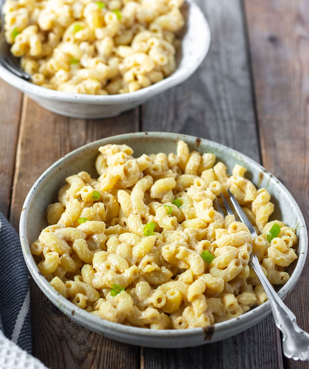 A vegan mac ’n’ cheese that is creamy, cheesy, and packed with nutty flavors! This healthier version of a comfort food classic is free from nuts and gluten.
