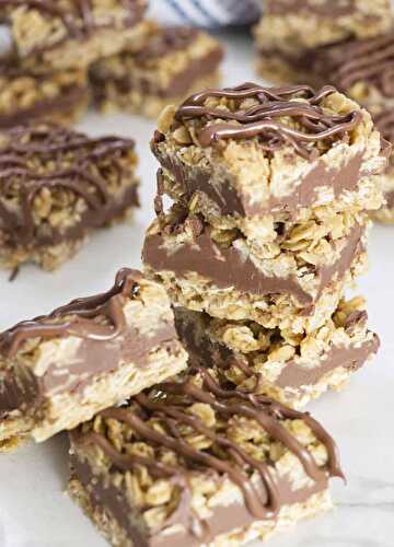 These no-bake chocolate Nutella oatmeal bars are a beautiful marriage between a crunchy oatmeal granola and a creamy chocolate Nutella filling.
