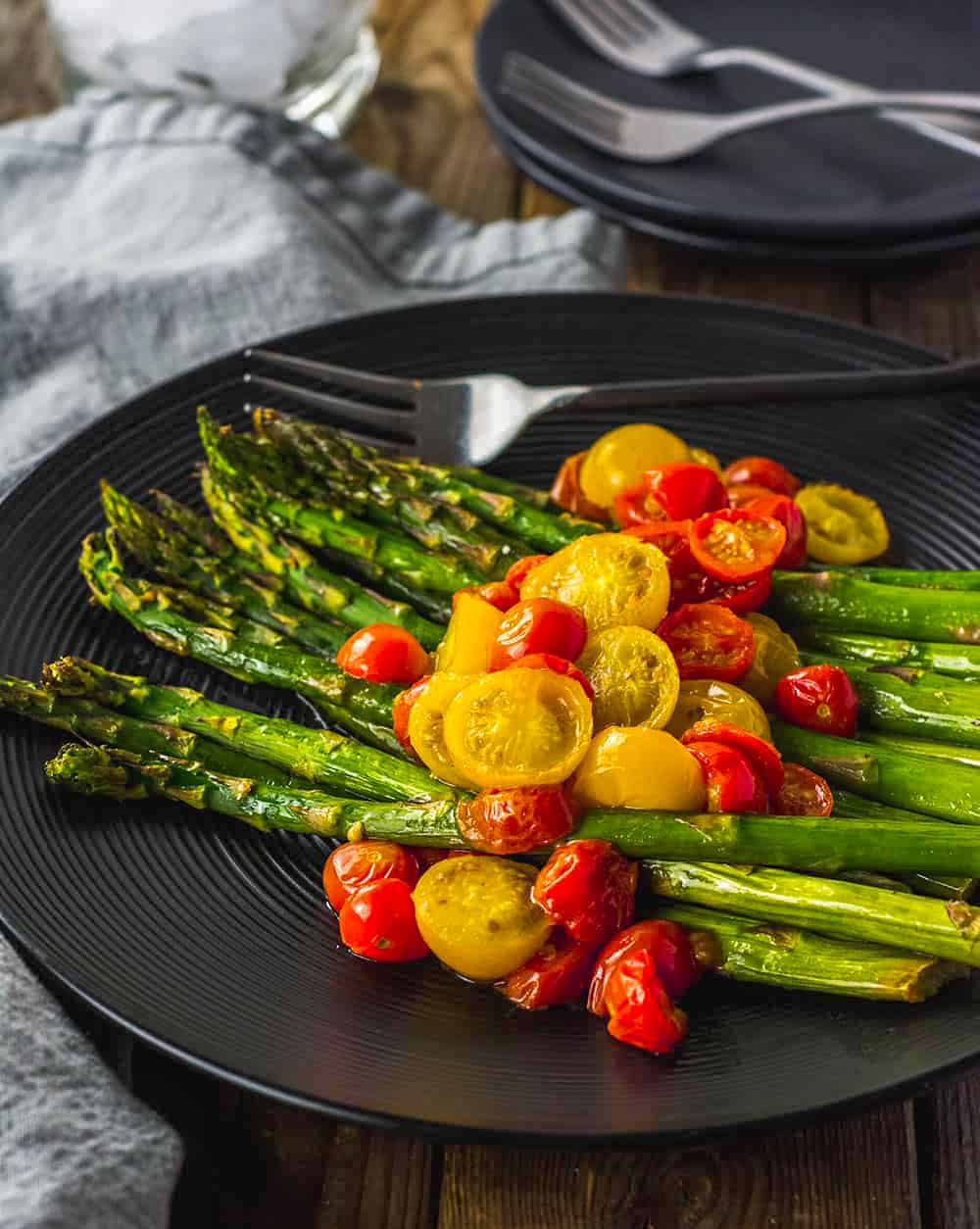 Better than steamed! Roasted asparagus and cherry tomatoes is a perfect side dish for any meal!