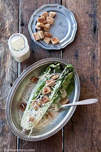 My twist on the traditional wedge salad uses romaine hearts, and Greek yogurt feta ranch for a slightly healthier tailgating win!