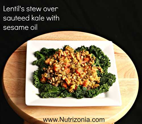 An easy flavorful, and nutritious recipe of lentils and kale sauteed with sesame oil.