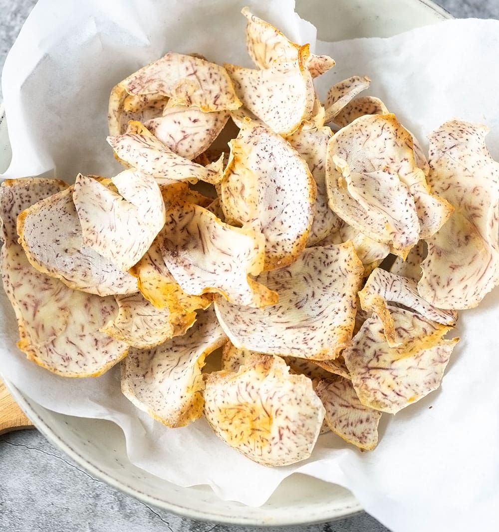 Crunchy, crispy, and delicious, plantain chips made with just 4 ingredients (including salt) are your go-to snack when you crave something salty and healthy.