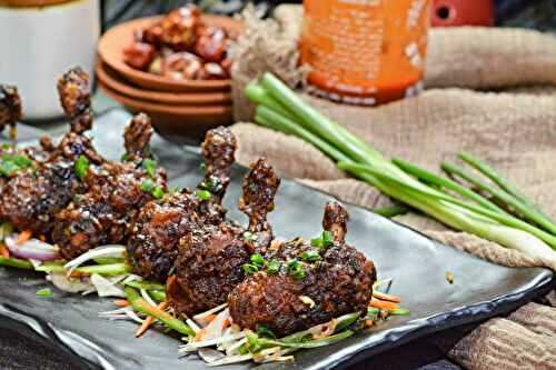 Chicken Lollypop Manchurian is an Indo-Chinese style appetizer made with deep-fried marinated chicken wings and then tossed in a spicy Manchurian sauce.