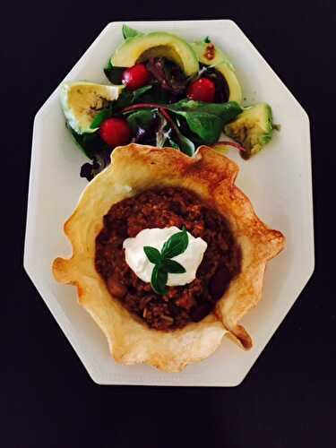 Served in crisp tortilla bowls, this delicious low carb, diabetic chili recipe is elegant and tasty.