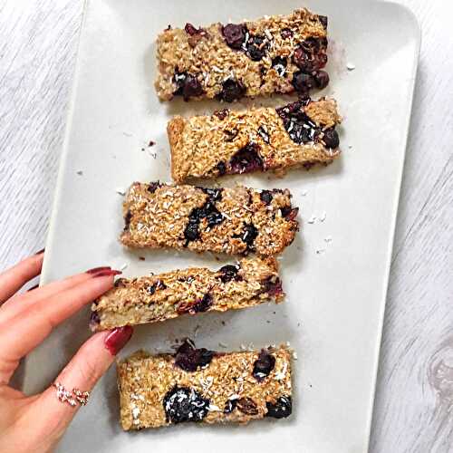 Raspberry and blueberry oaty breakfast bars - an easy make-ahead breakfast to prepare on Sunday night and have through the week! 9 grams of protein per bar!