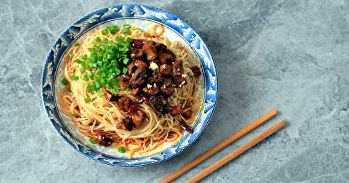 Shrimp and vegetables are cooked with noodles and typical Singapore spices to make this tasty, quick and easy Singapore shrimp noodles recipe