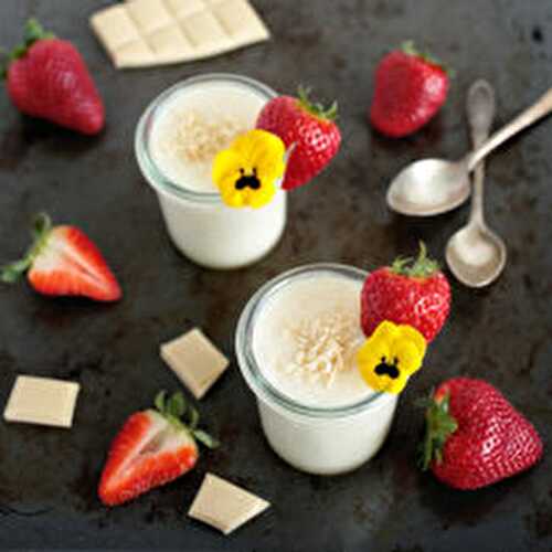 Sweet, smooth and creamy vegan white chocolate mousse with strawberries using aquafaba as the base + vegan chocolate GIVEAWAY!!!