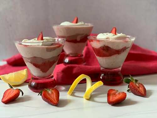 If you love strawberries, and it is, after all, strawberry season, this dessert might be just your ticket! This beautiful parfait is made with alternating layers of strawberry curd mousse, strawberry curd, and fresh pureed strawberries.