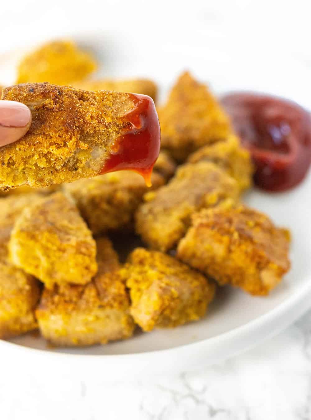 This delicious crispy jackfruit with curry sauce is a good alternative for fried chicken.