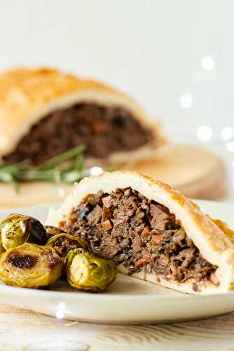 Rich and festive vegan puff pastry lentil and jackfruit loaf.