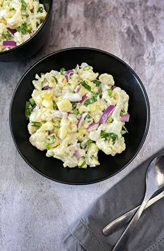 Delicious low carb, Vegan Potato And Cauliflower Salad is easy to prepare and flavorful.
