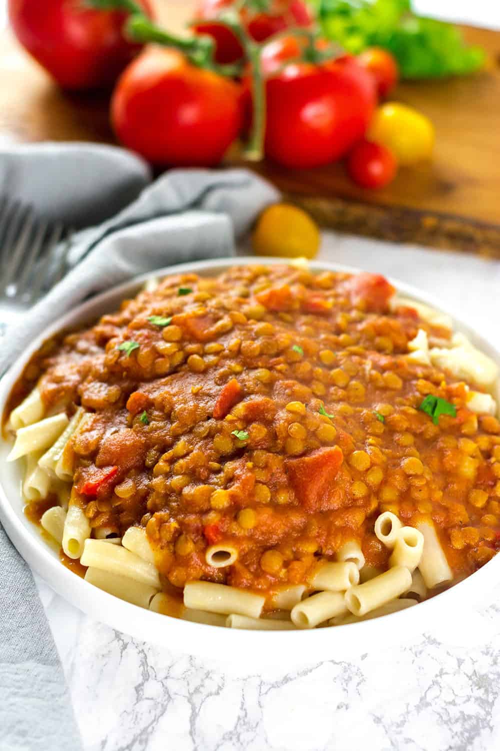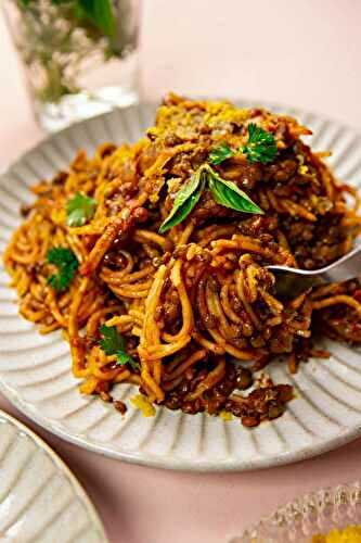 The combination of vegan lentil bolognese and pasta will turn into an unforgettable taste.