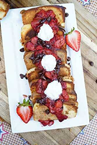 Try this Strawberry Chocolate Blackstone Pound Cake to satisfy your sweet tooth without heating up the house! Buttery pound cake topped with fresh cooked strawberries and chocolate chips make the perfect after dinner treat.