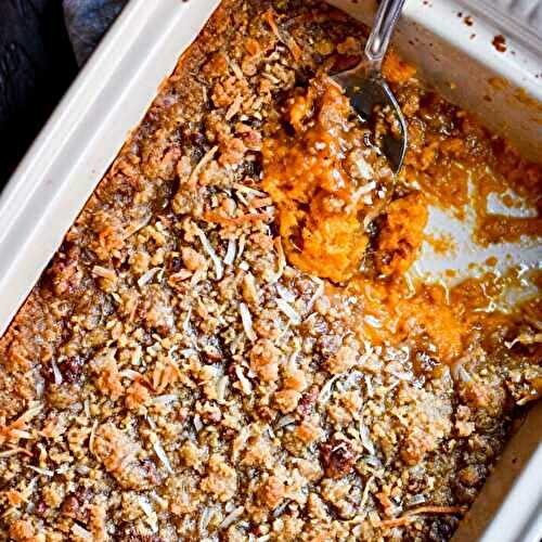Sweet potato casserole with streusel topping is perfect for your holiday table.
