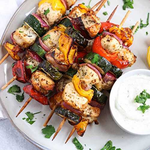 These flavorful Air Fryer Chicken Kabobs (Kebabs) are made with tender chunks of chicken breast and colorful veggies, all threaded onto skewers and air fried to perfection.