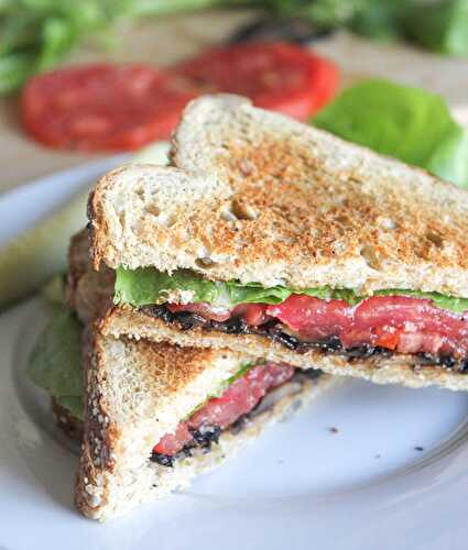 This Vegan BLT recipe is made with Tempeh Bacon, pair with fresh salad and warm toasted bread.