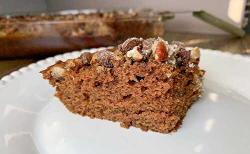 This Applesauce Coffee Cake is made with applesauce and sour cream to keep it super-moist, and a cinnamon streusel adds sugar and spice in the center and the top of the cake.