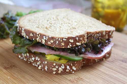 This ham, piccalilli and cucumber sandwich is a tasty combination of British flavors.
