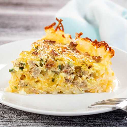 This hash brown crust sausage cheddar quiche is the perfect meal to enjoy for breakfast or brunch any day of the week! A hashbrown crust is par-baked before adding in the rich sausage and cheese filling and popping it in the oven! It's a perfect dish.