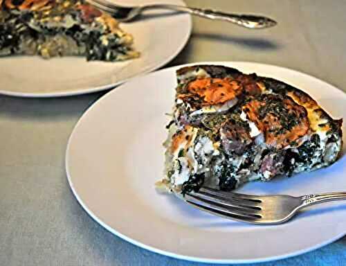 Sausage, Spinach and Goat Cheese Quiche, with a shredded potato crust.