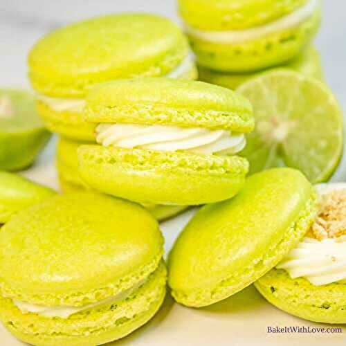 My tasty key lime macarons pair sweet-tart key lime flavor with tangy key lime cream cheese filling and a sprinkle of graham cracker crumbs.