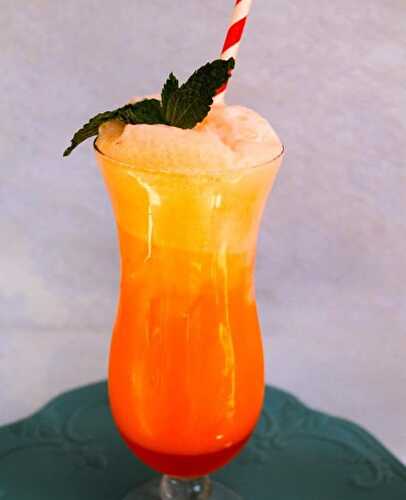 A cool, creamy, frosty soda flavored with orange syrup and topped with orange sherbet and vanilla ice cream.